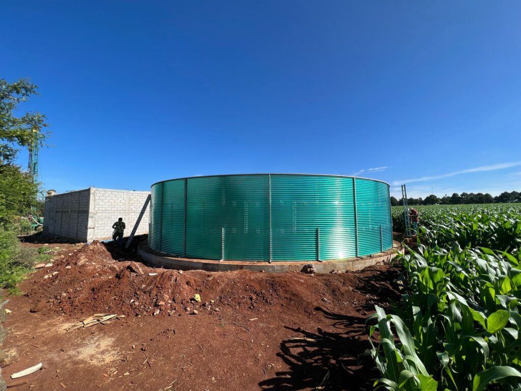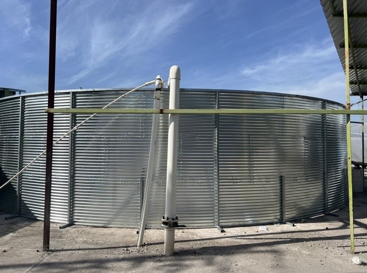 525,000-liter tank supporting efficient irrigation for a tomato farm.